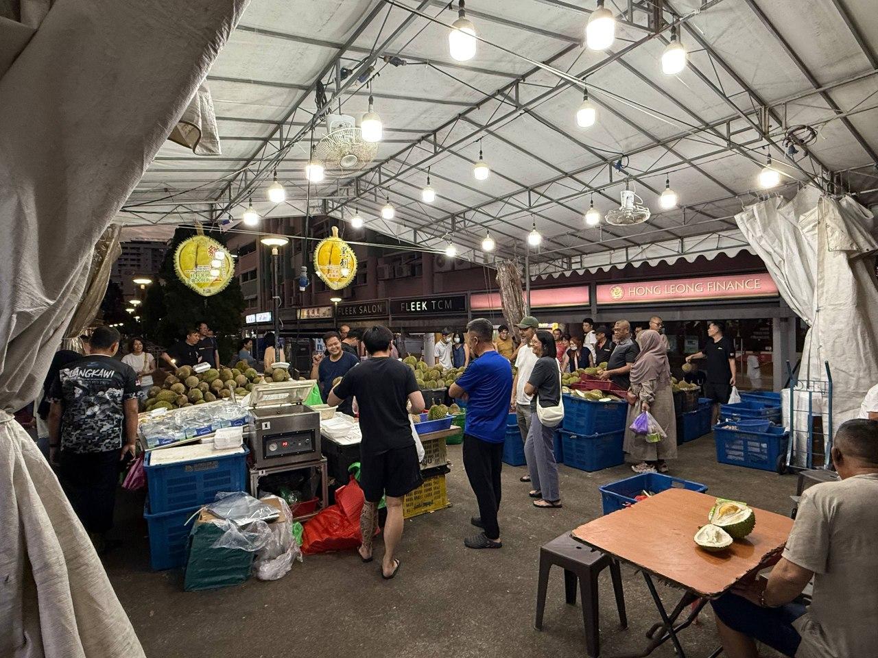 Night market crowd gathers for fresh durian feast