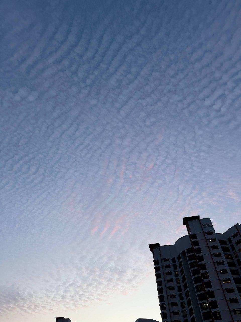 Rippling Clouds Over Tall City Buildings at Dusk